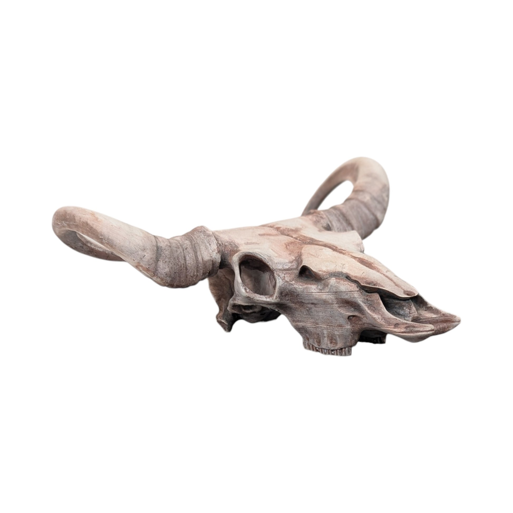 Unlike the translucent models in our collection, this piece focuses on hyper-realism. It has been hand-painted and weathered to achieve a "desert patina"—capturing the look of sun-bleached bone, dust, and the passage of time. It brings the rugged spirit of the frontier into your home, offering the aesthetic of a real skull.