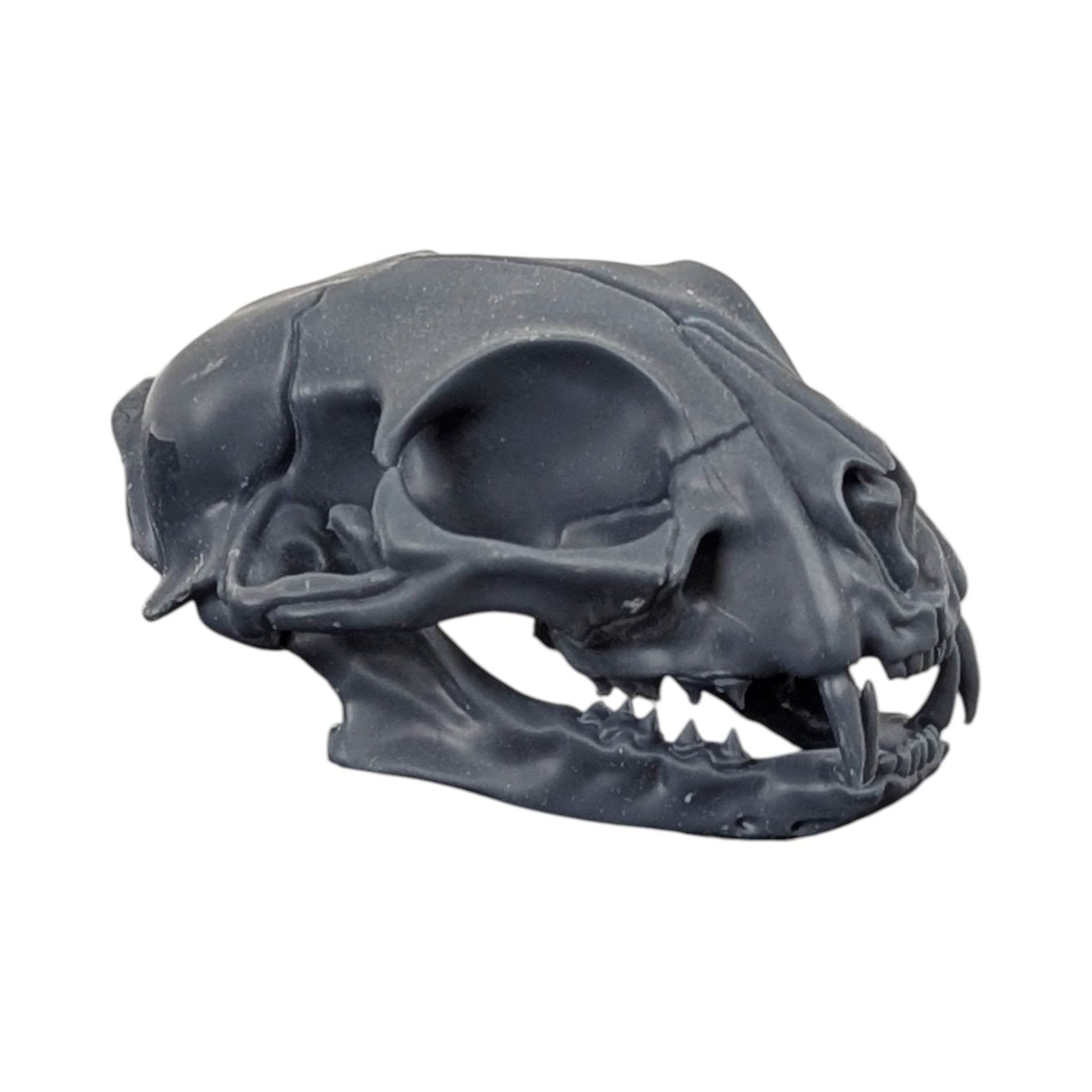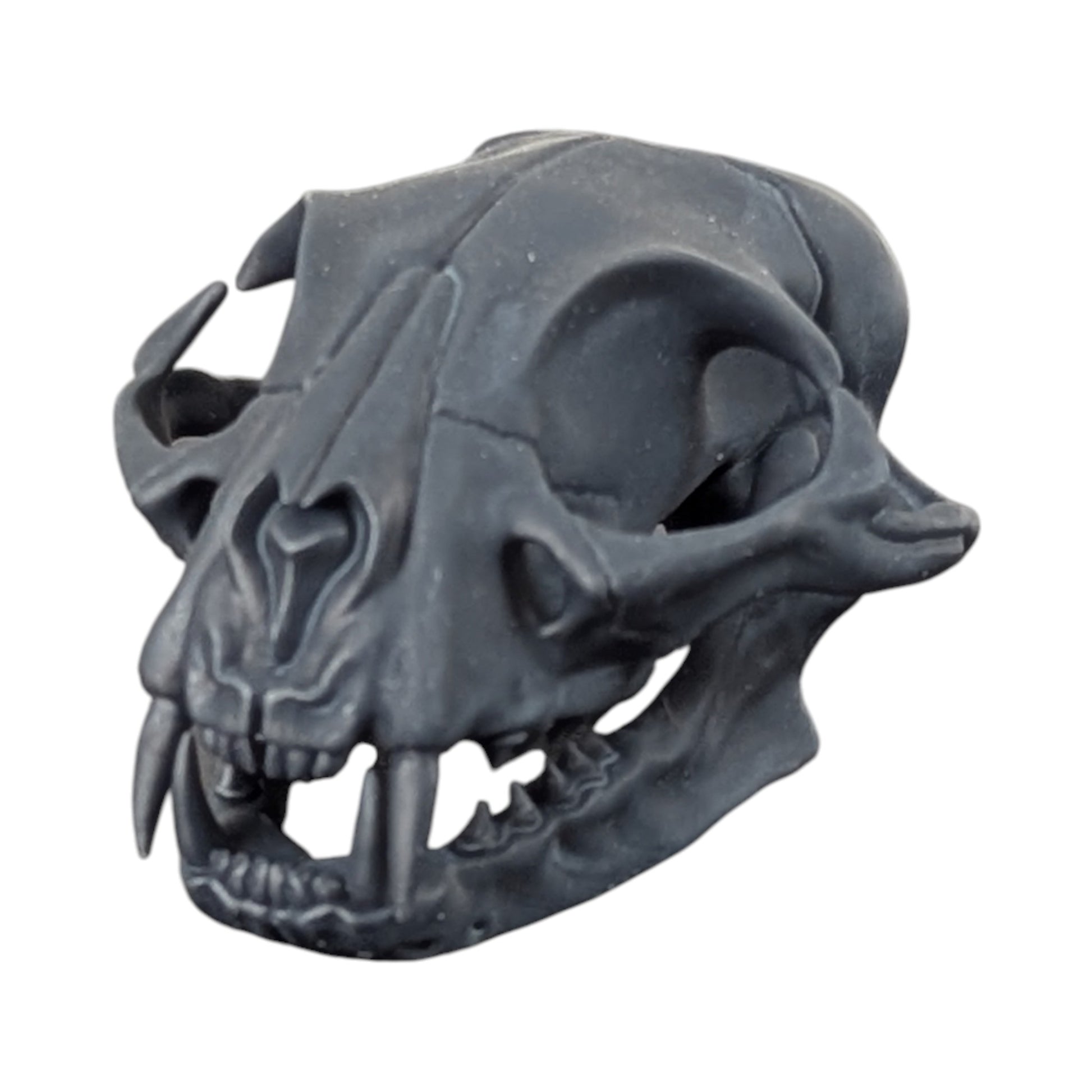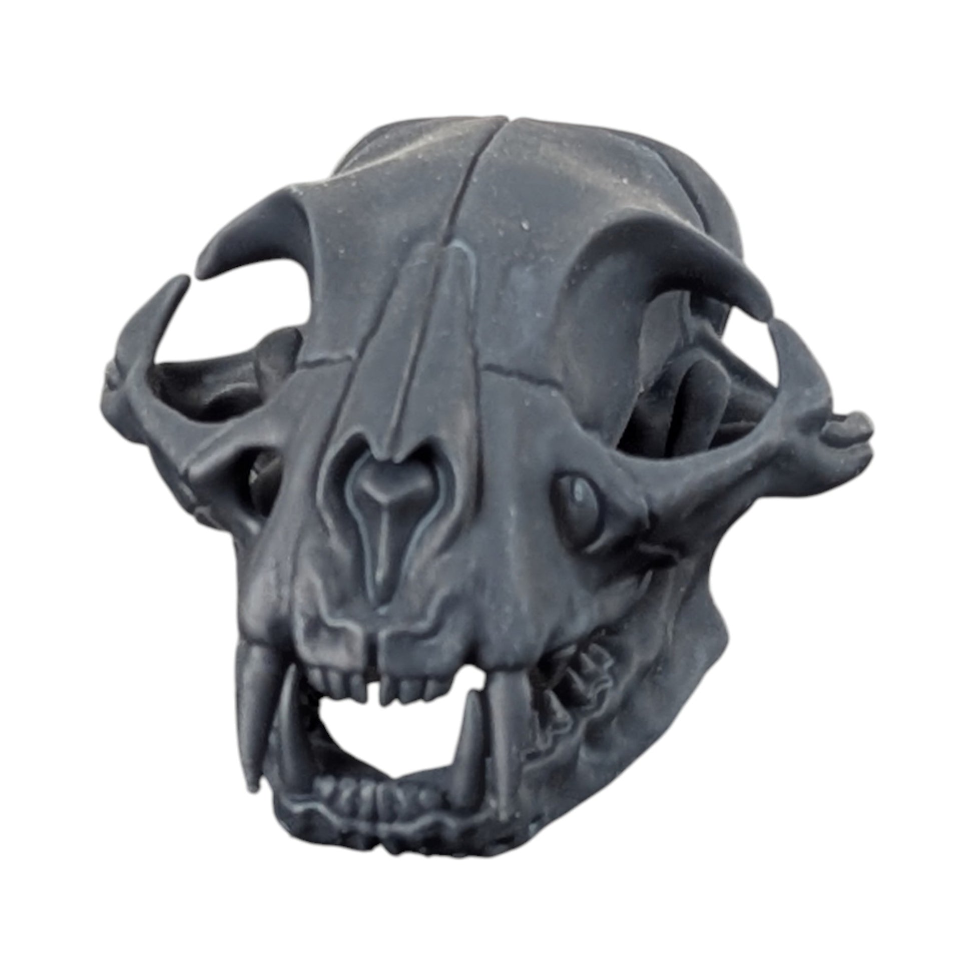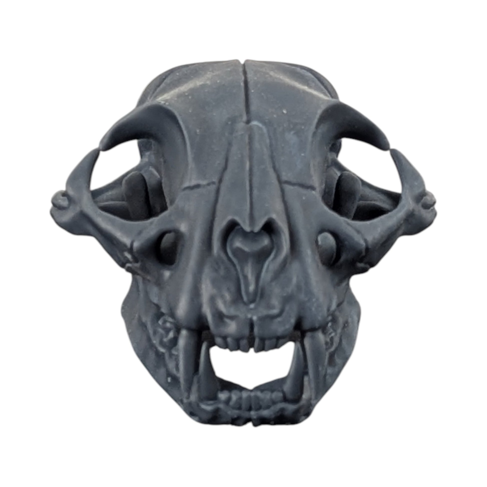 A study in shadow. Stripped of color and shine, this Matte Black cat skull highlights the raw geometry of nature’s perfect predator.