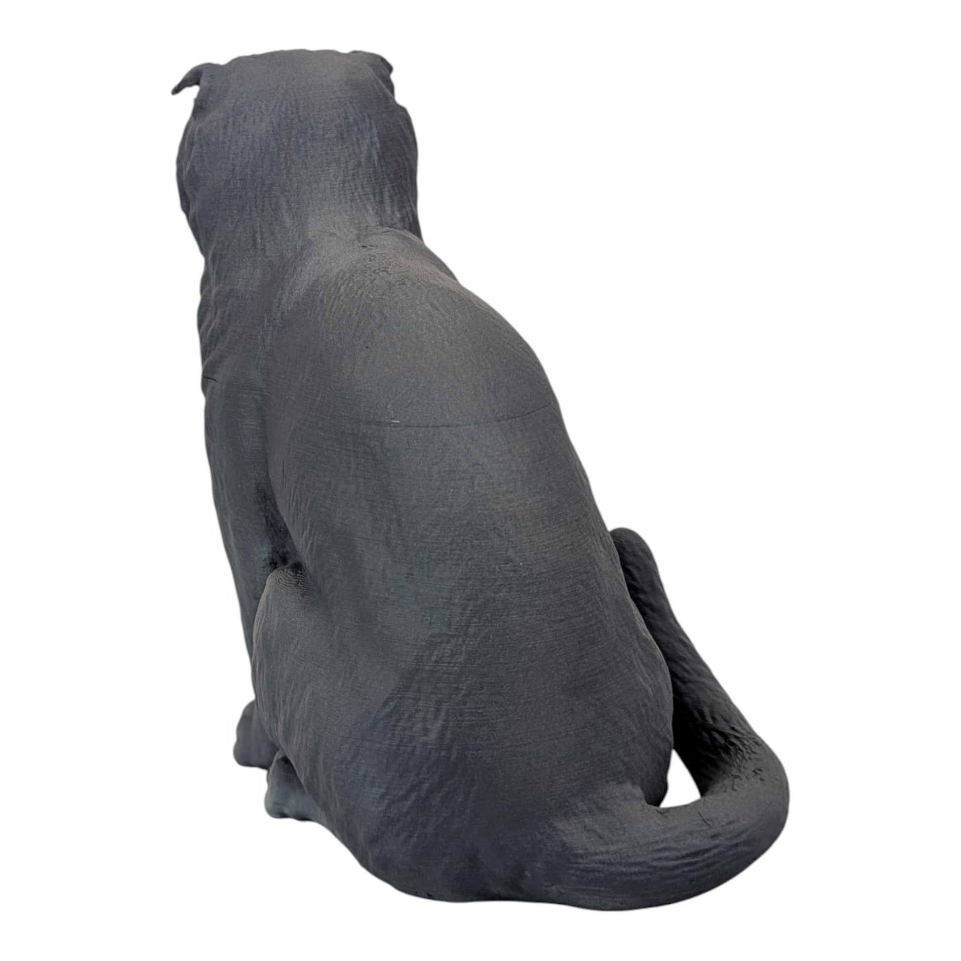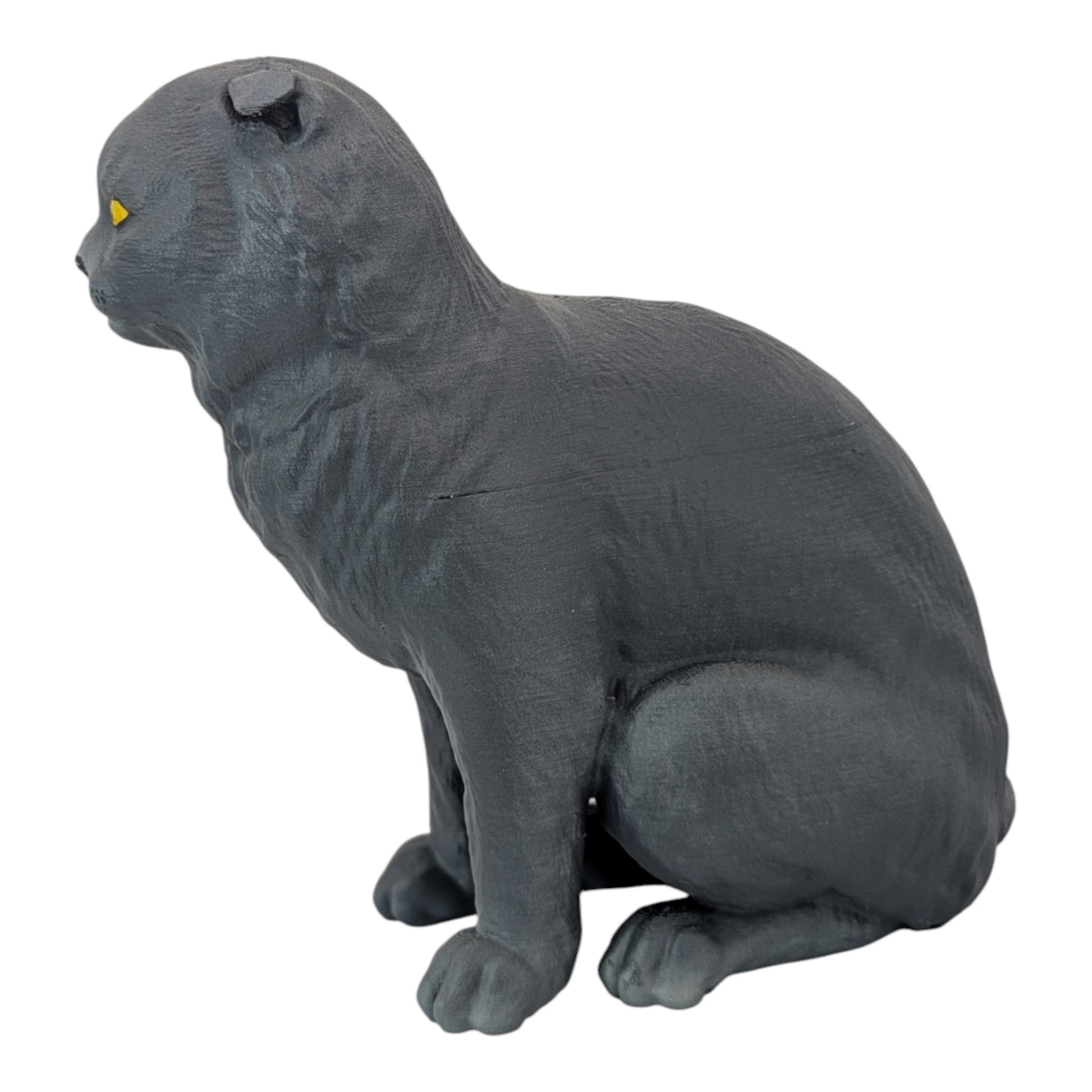 "Rory" was our very first exploration of the Scottish Fold, a design that would later become our 'Misty' model. We were trying to capture that uniquely tender and almost melancholic expression that makes this breed so captivating. His pose, with those signature folded ears, became the foundation for the final piece. As an early test piece, he's not 'perfect'—but he is one-of-a-kind. He has visible 3D print lines and an early test paint job that our artists used to perfect their process. These "perfect imperfections" are the marks of a true studio original, and they're what make him a unique part of our story.