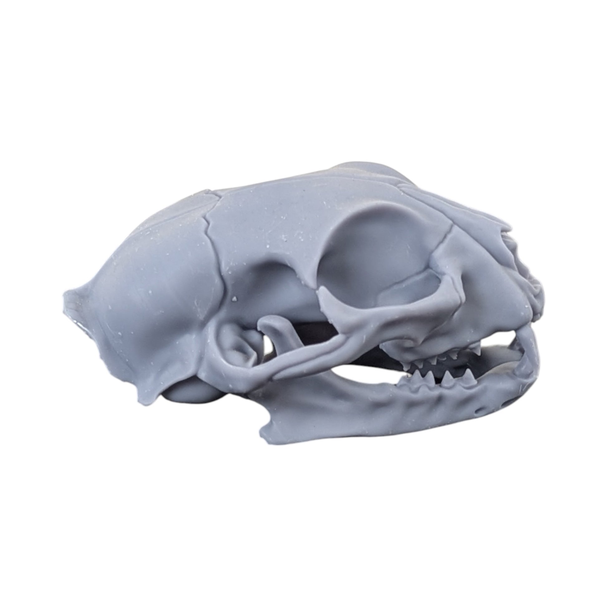 Modern Industrial. This 1:1 life-size cat skull is 3D printed in a solid, Matte Grey resin that mimics the look and feel of smooth concrete.